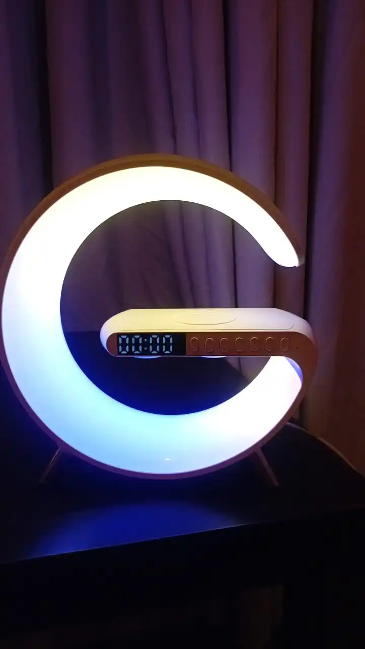 New Trend G-Shaped App Control Wireless Charging Desk Table Lamp With Clock& BT Music Smart Speakers Ambient Night Light G Lamp